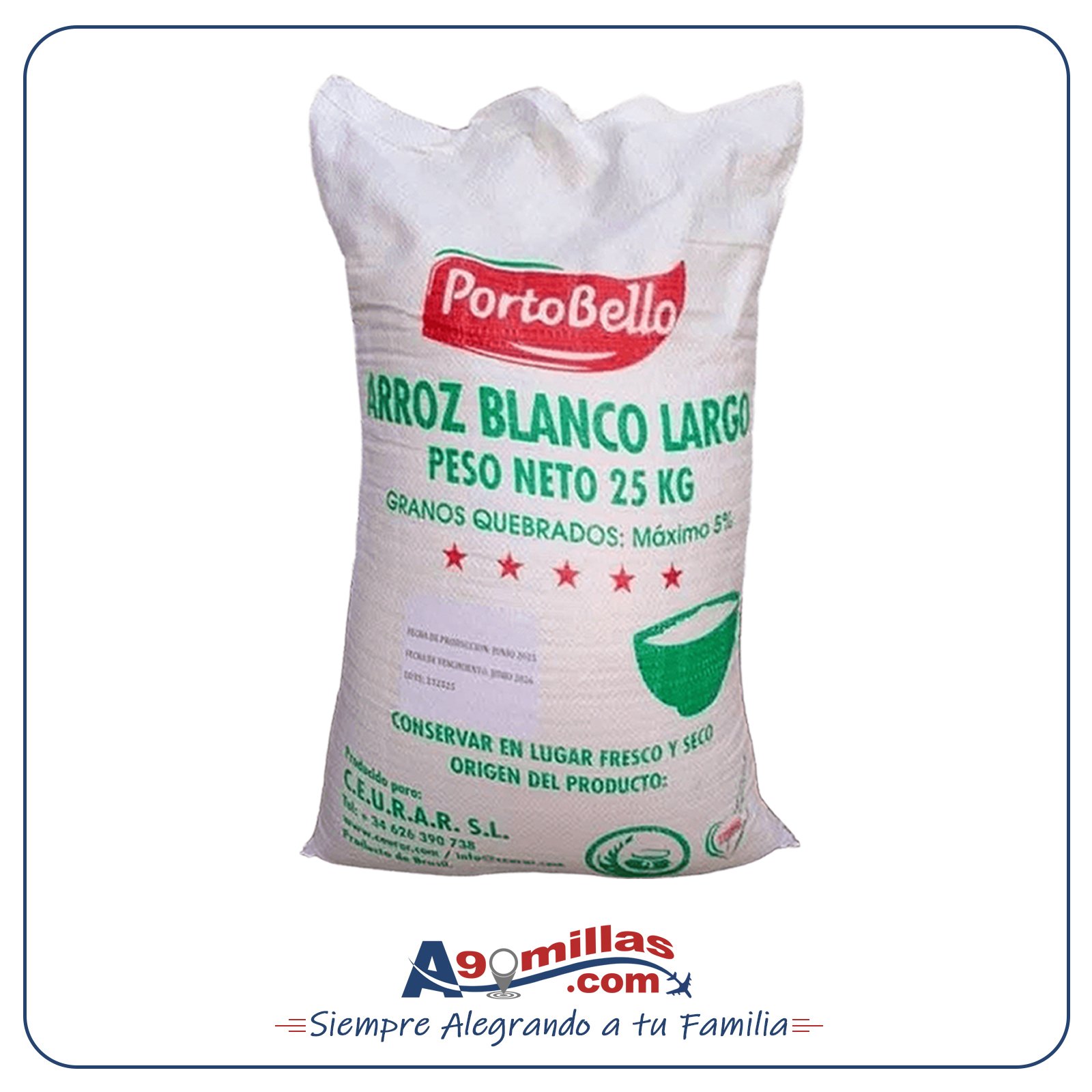 1 Saco de Arroz (PORTO BELLO) de 25 kg, Aproximadamente 55 libras